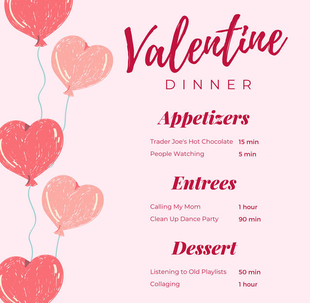 INSTRUCTIONS: Sit down and make a list of things, events, people, etc. that have been making you warm lately. Try and make it range in energy level (ex. lying on the floor and listening to Lorde vs hiking around Joshua Tree)Once you've gathered this list, separate the points into three sections: appetizer, entree, and dessert. Feel free to add a bevy section accordingly.The appetizer section is for low energy/low commitment joys. These are great pick-me-ups. Entree joys are more committed but deeply fulfilling. You may have to set aside time to engage with these joys or prep beforehand. Dessert joys are saccharine "guilty pleasures" that you set aside as a treat. They may be big or small but work best in small doses.Next time you're feeling down or just need to halt, look through your snacks that spark joy and feed your soul.